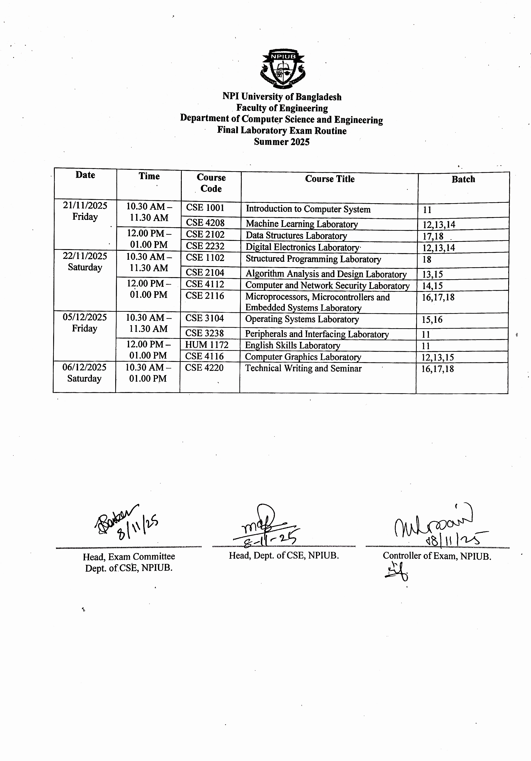 Lab Final Exam Routine Summer-2025